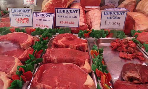 We are one of the few remaining butchers who purchase and butcher the whole carcass of animals to ensure the highest quality butchery standards. We know the origin and source of all our meat. Our beef is all traditional beef breeds with no dairy influence to ensure the highest quality and is aged to enhance flavour and tenderness. Our range of steaks and roasting joints are matured for a minimum of 21 days.